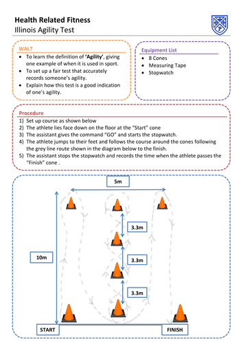 Evaluation limits % a number of people included in the group. Completed with tutorial conducting illinois agility test 3. This test measures an athlete's agility; The aim of the test is to complete the running course in the shortest possible time. Start studying the illinois agility test.